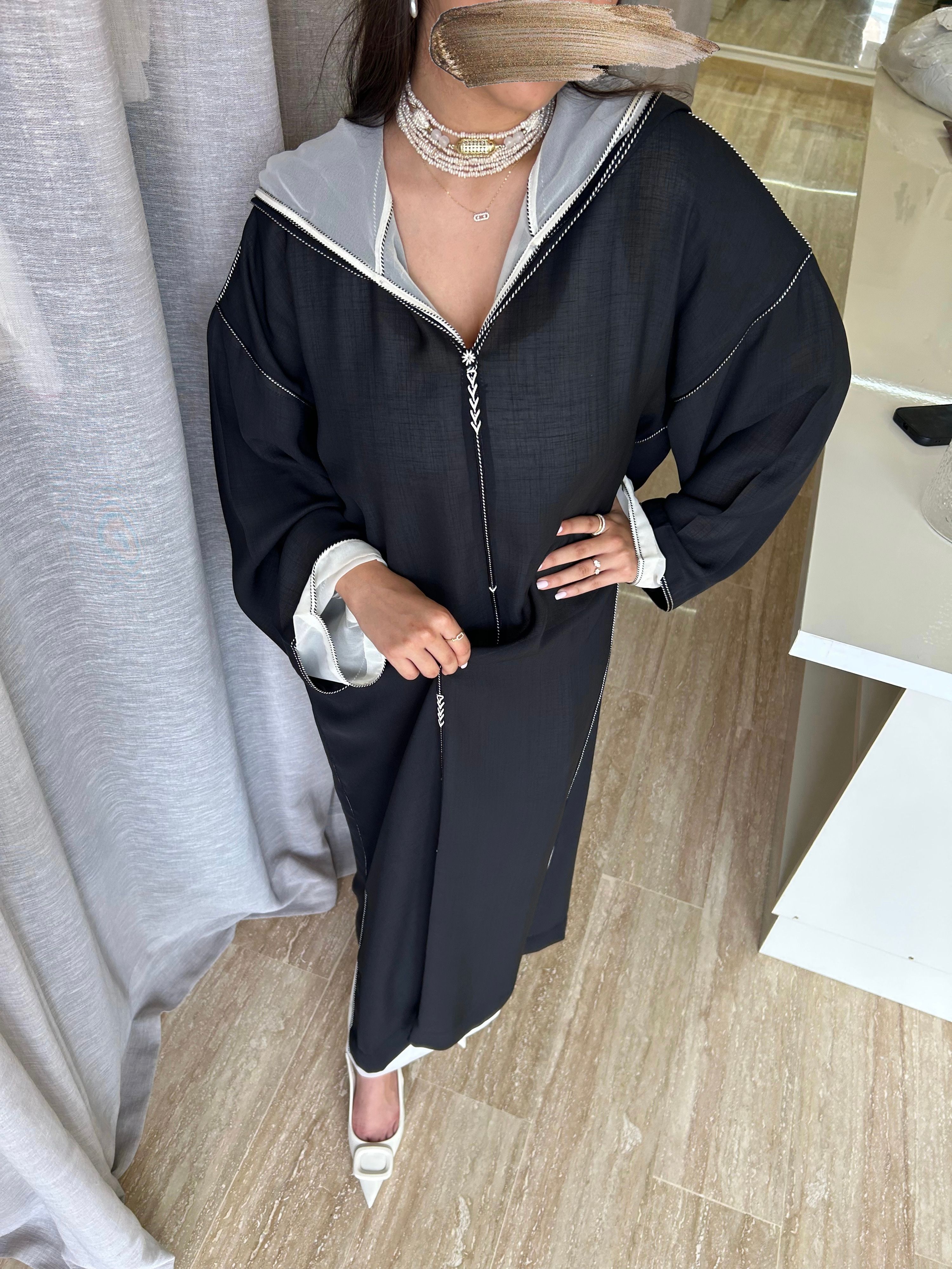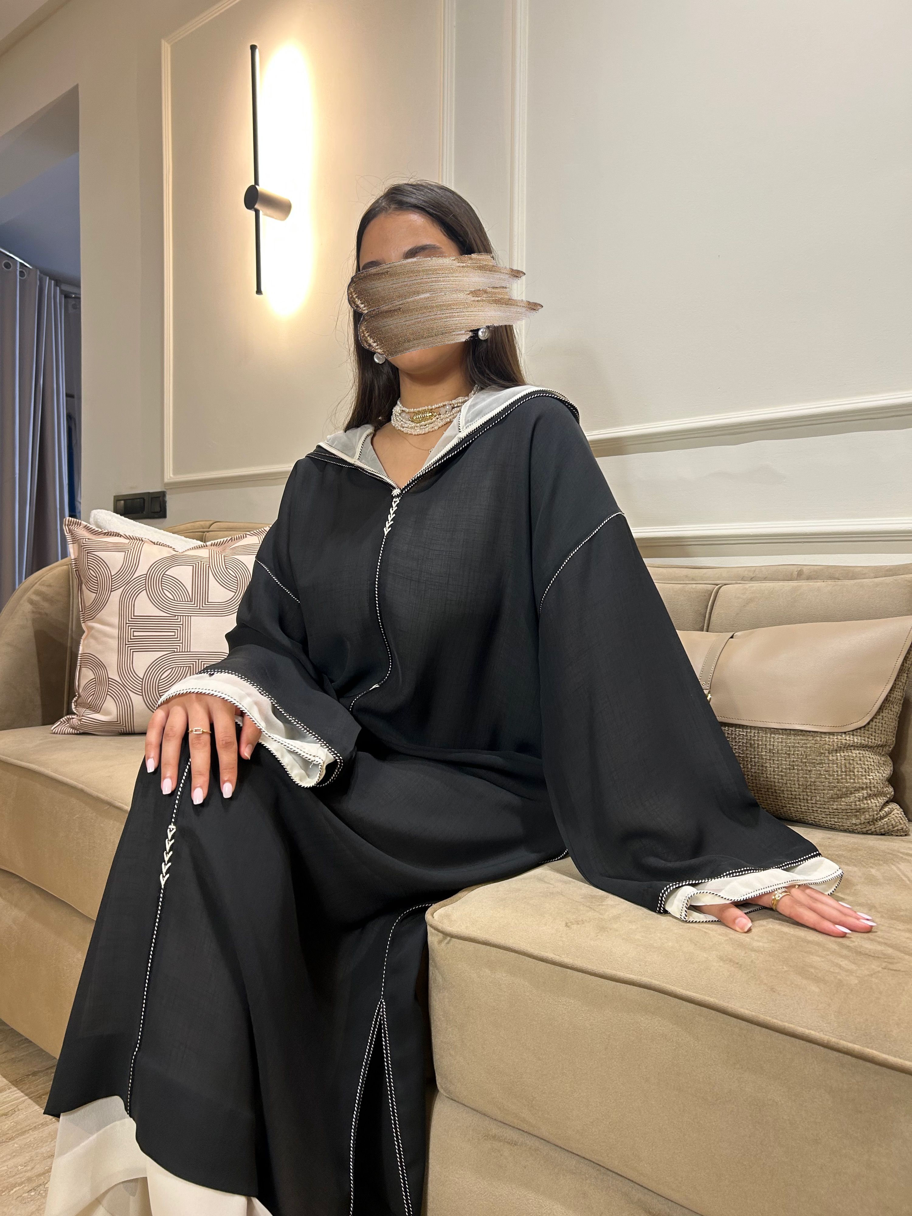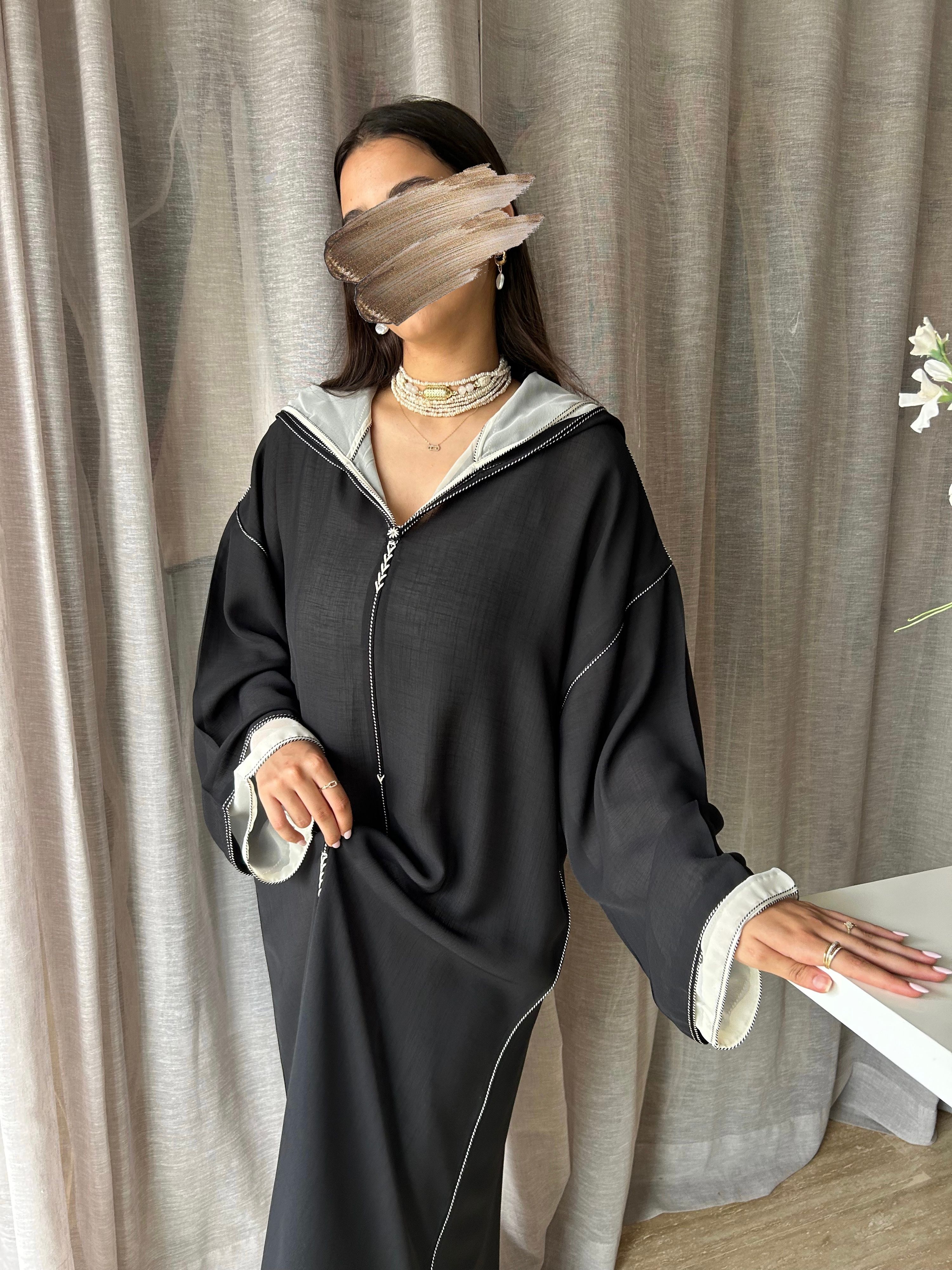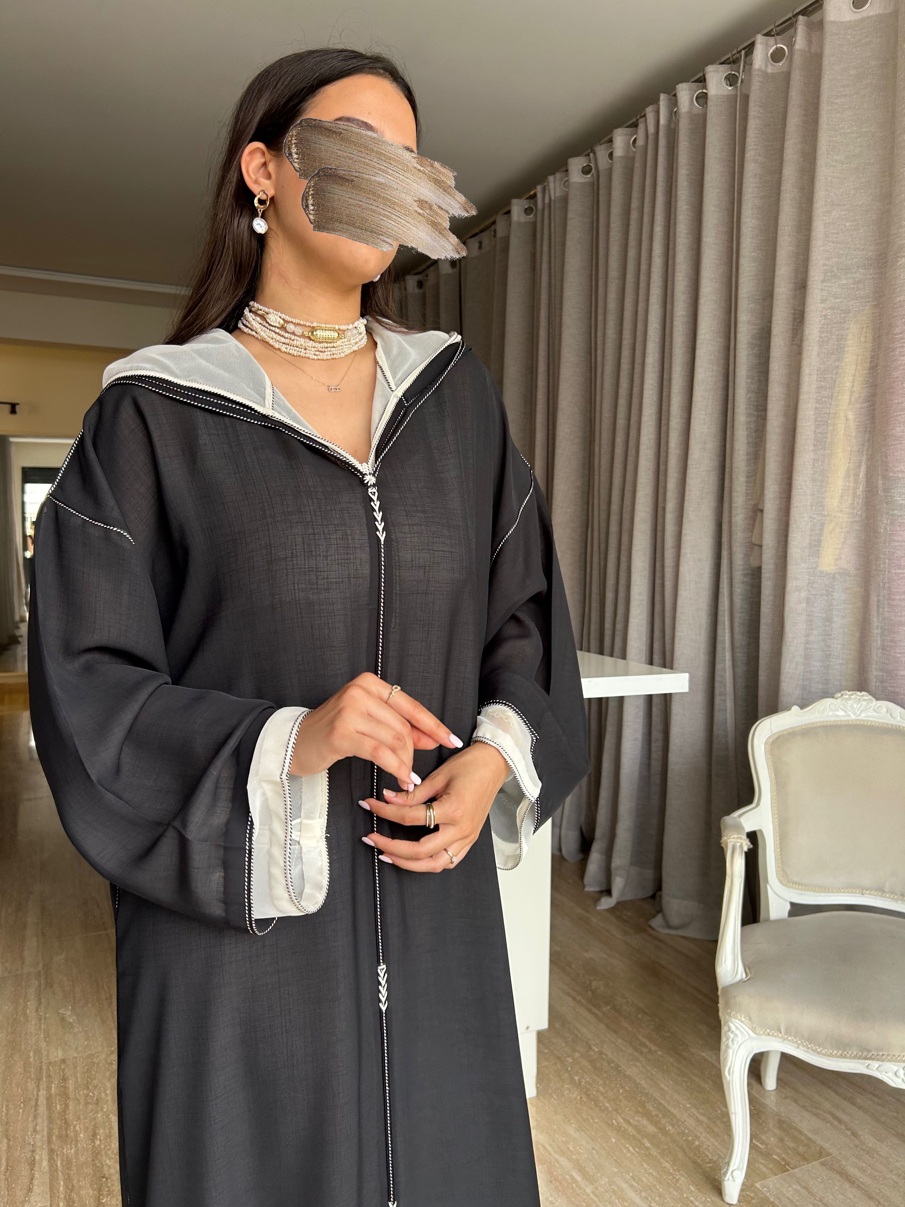 • Two-piece jelaba in black soussdi moussline.