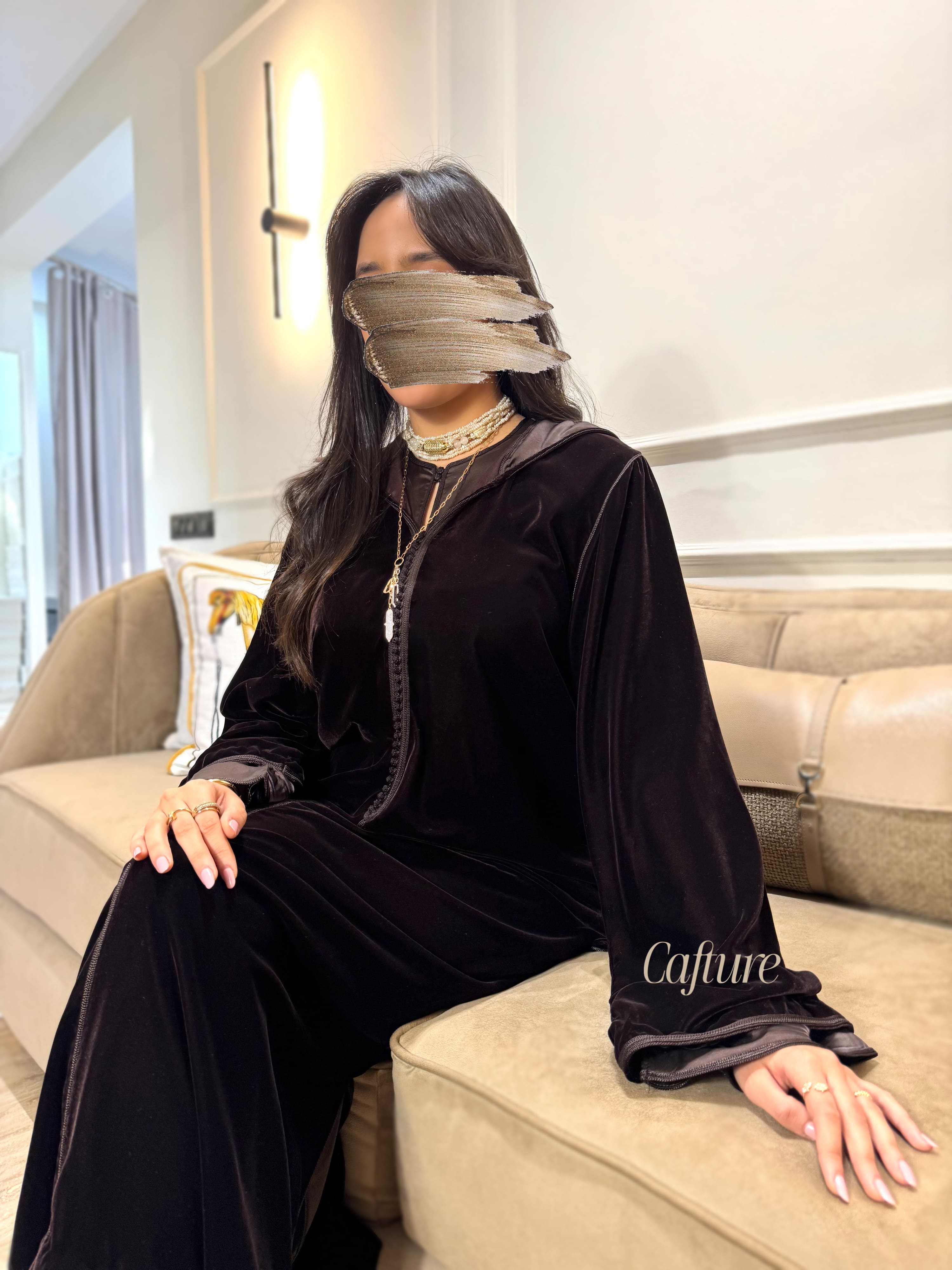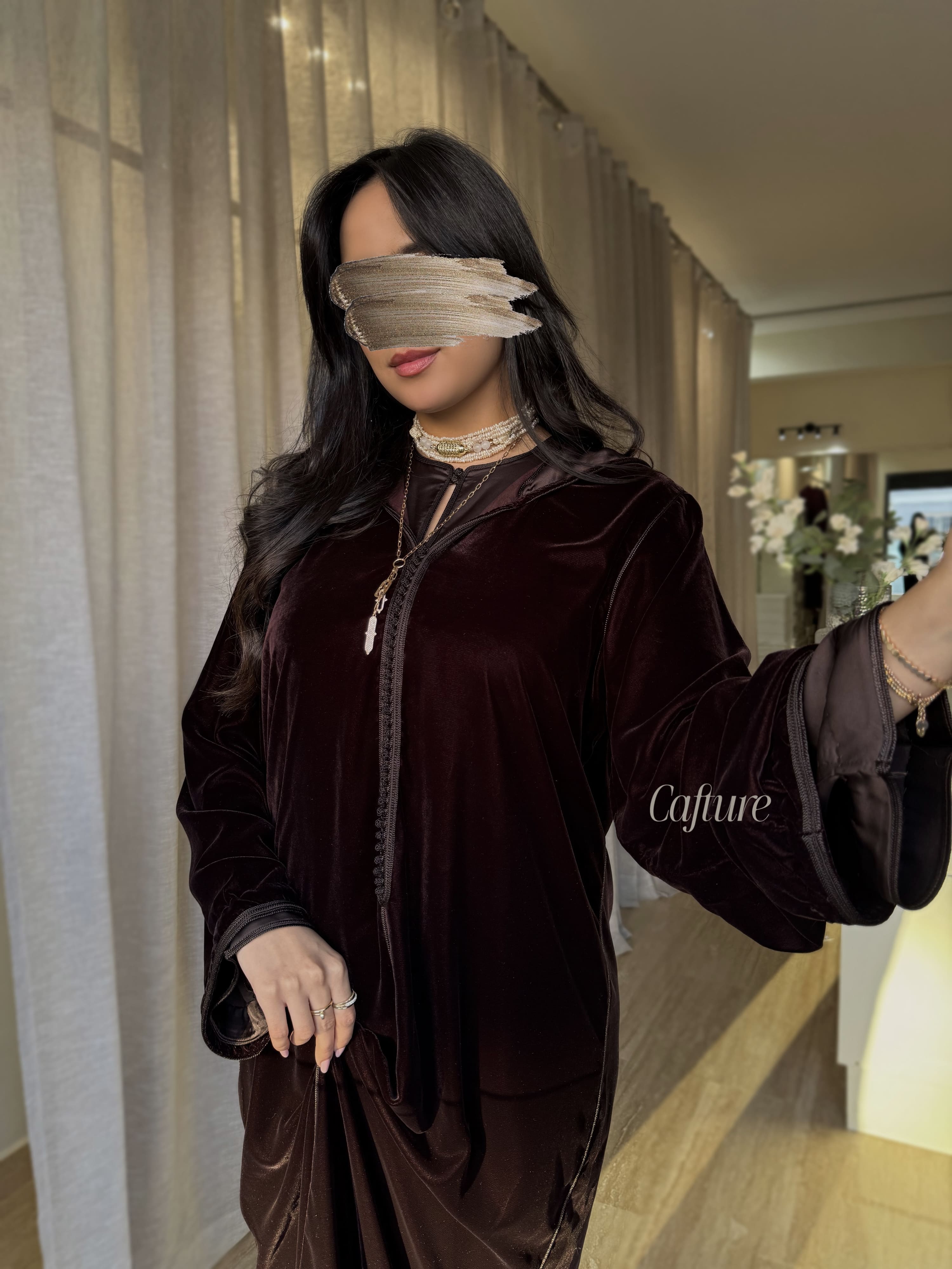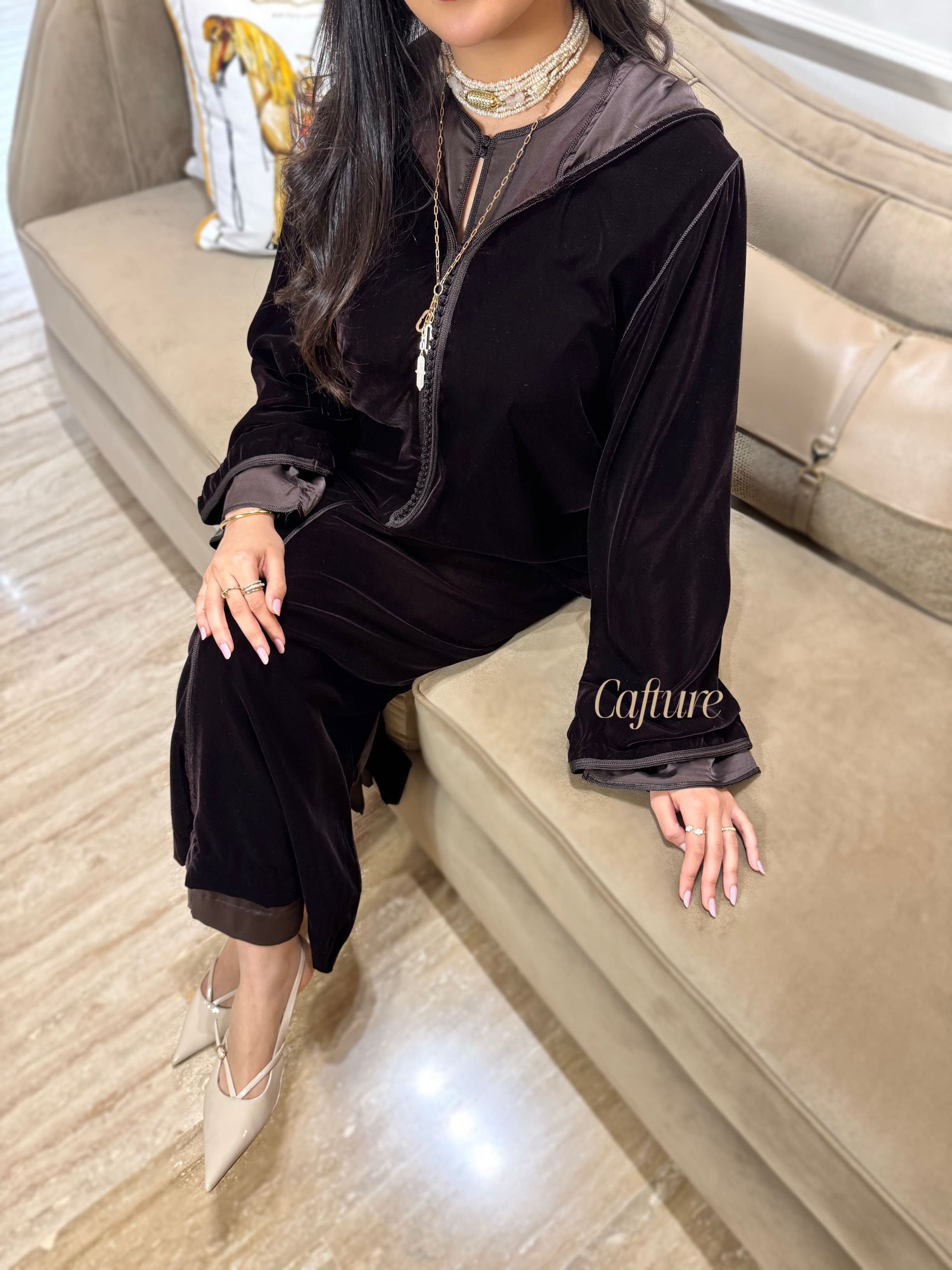✨ 2-Piece Chocolate Brown Velvet Jelaba with Satin Kmiss ✨