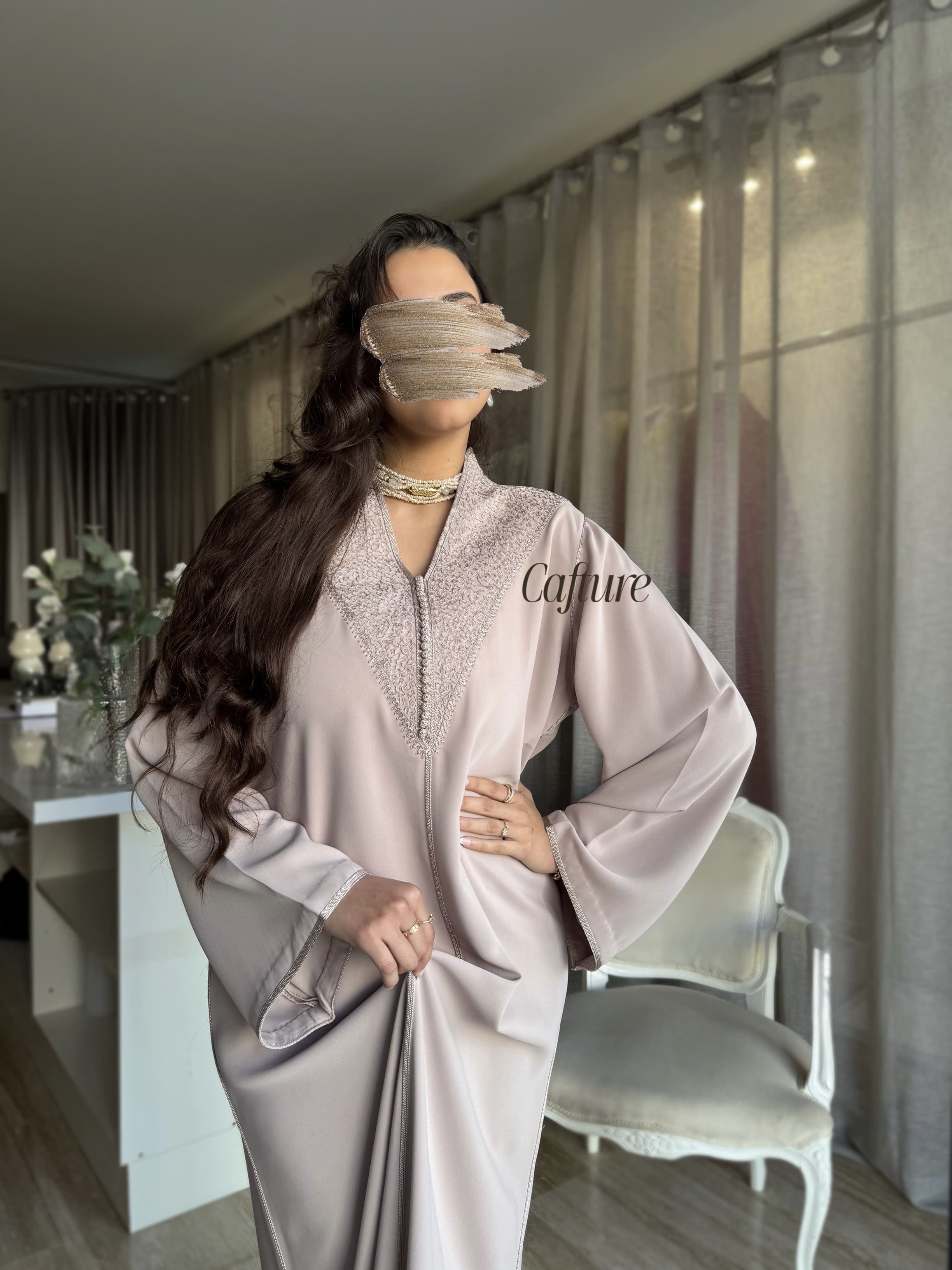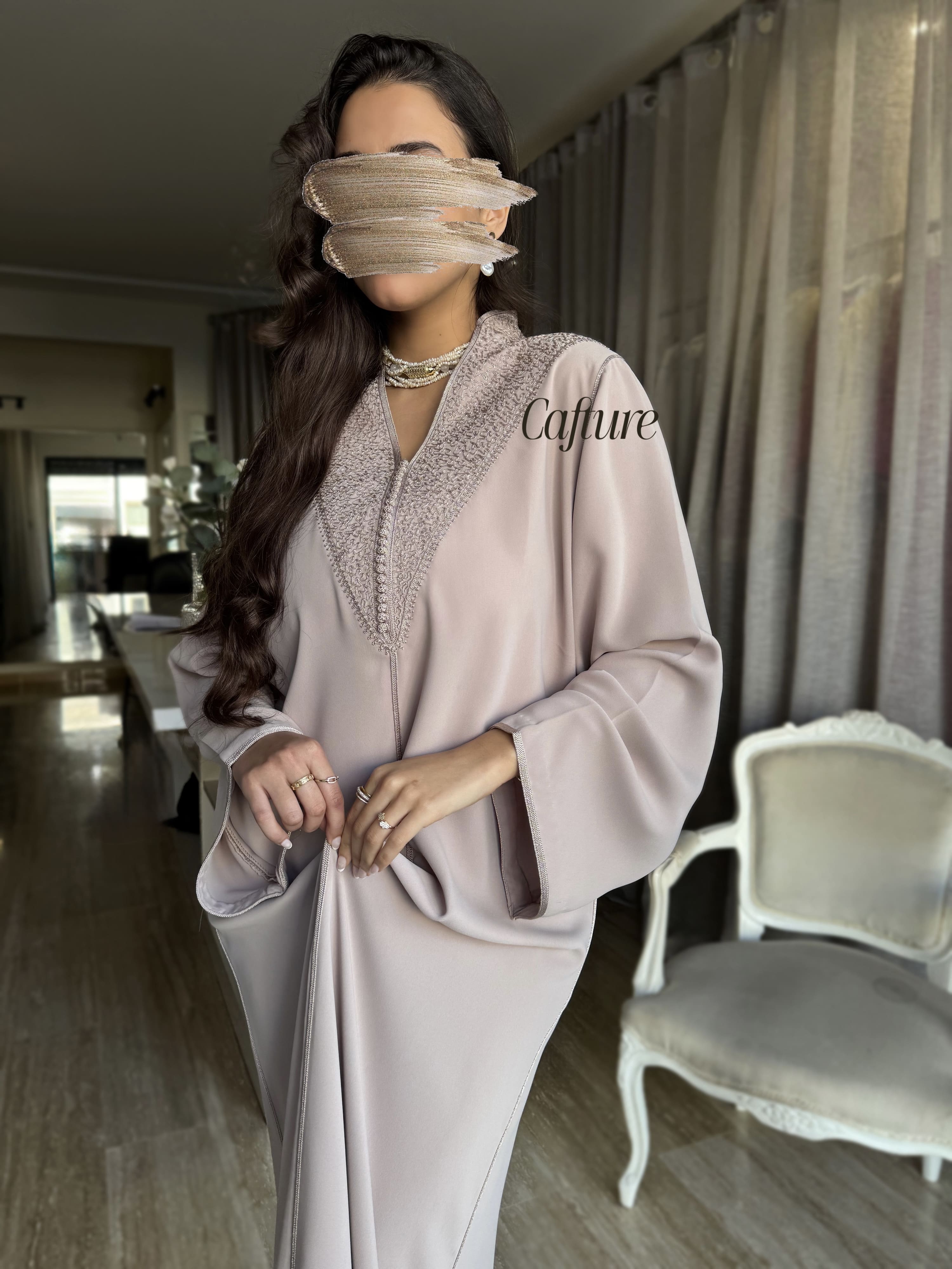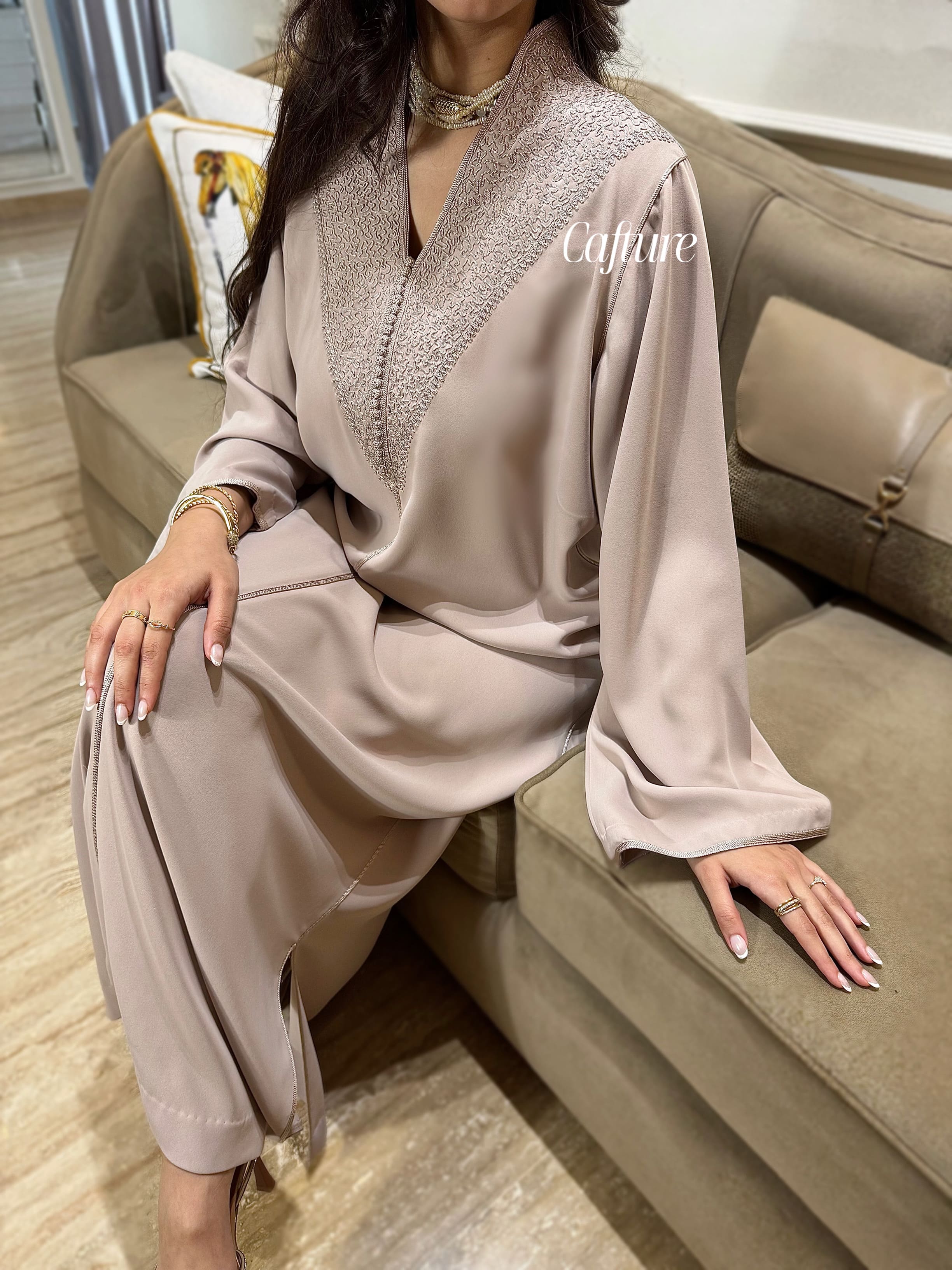 ✨ Embroidered Light Beige Silk Crepe Kmiss ✨